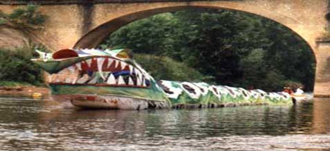Le résultat de ces ateliers s’est exprimé dans le cadre de la manifestation "Par les Villages" organisé par le Conseil Général de la Dordogne, où ce dragon aquatique de 25 mètres de long, le nénuphar, moustiques et forêts (radeaux décorés), ont descendu, durant deux jours, les eaux de la Vézère jusqu'à son confluent.