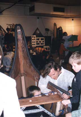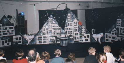 Spectacle jeune public où les enfants construisent avec les techniciens et les comédiens de Tupi Arts Vivants, une partie du décor où sera joué par la suite le spectacle, "Mirages aux Portes de Noël".
