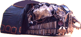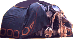 Structure sonore déambulatoire symbolisant une tortue porteuse de la musique du monde. |